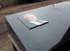 Мы изготовили небольшую плиту из чёрного гранита, на её поверхность прикрепили фотокерамику с изображением покойного.