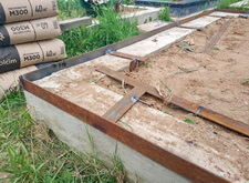 Для начала мы крепим к периметру цоколя металлическую планку, которая послужит бортом для брусчатки. Для придания необходимой жёсткости навариваем на железо необходимые элементы, тем самым надёжно закрепляя планку.